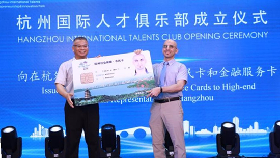 Over 150 overseas talents, entrepreneurs, and representatives from financial institutions attended the unveiling ceremony. Two entrepreneurs, Majdi Alhmah and Eric Koh from Hangzhou International Talents Entrepreneurship & Innovation Park, were granted Hangzhou citizen cards and financial service cards exclusively for overseas professionals.