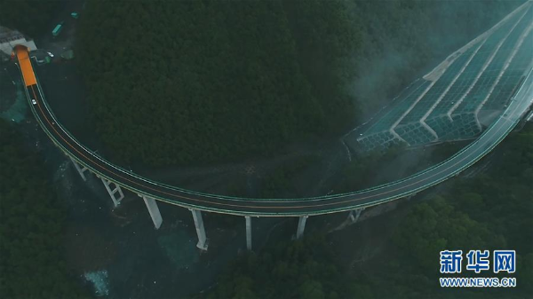 Aerial photo taken on June 11, 2019 shows a car running on the highway linking Zhalonggou with Nianbo township in Northwest China's Qinghai province. [Photo/Xinhua]