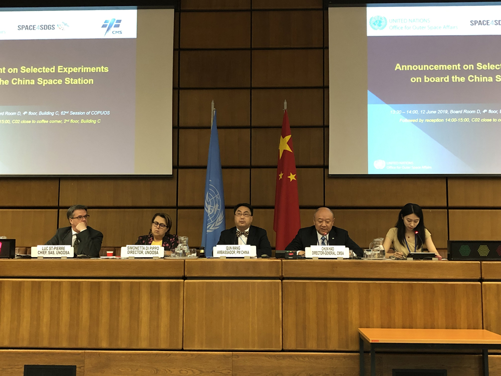 Hao and Simonetta di Pippo, director of UNOOSA, jointly announced the nine projects at the ceremony.