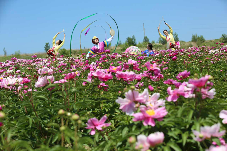 Blooming peonies and Chinese herbaceous peonies are seen in Hunchun city, Northeast China's Jilin province. The sea of flowers dazzles visitors with gorgeous colors in the early summer. [Photo by Wang Faquan/China Daily]