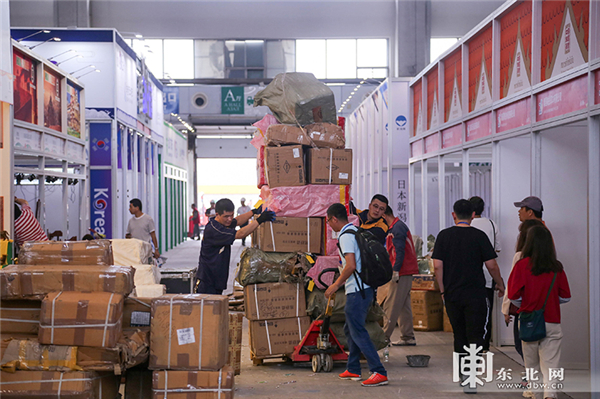 Exhibits for the 6th China-Russia Expo and 30th China Harbin International Economic and Trade Fair arrive at the Harbin International Convention Sports Center on June 13. [Photo/dbw.cn]
