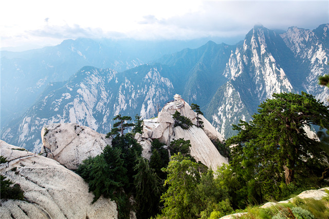 Huashan Mountain, one of the Five Great Mountains in China, is located in Huayin city, Weinan city, in Northwest China's Shaanxi province. The site boasts five imposing peaks with sheer precipices and overhanging rocks. [Photo/VCG]