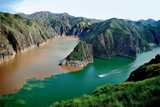 The Chinese idiom jingweifenming (泾渭分明), meaning "as different as the waters of the Jinghe and the Weihe", comes from the unique view of the place where the two rivers meet in Gaoling county, Northwest China's Shaanxi province. [Photo/cnwest.com]