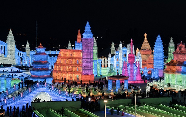 Harbin Ice and Snow World is an ice and snow art project running from the end of December to early March each year in Harbin and is the main host site of the annual Harbin International Ice and Snow Festival. It was initiated in 1999 by the Harbin government to welcome the new millennium. Harbin Ice and Snow World has the top ice and snow sights and entertainment, the most beautiful scenery and the best activities. Every year, Harbin Ice and Snow World has a different theme, with ice buildings illuminated with colorful lights to welcome tourists from around the world.