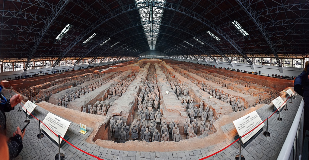 In 1974, some farmers happened to dig up what turned out to be a large-scale pit with terracotta soldiers and horses, belonging to the Emperor Qin. After 2,200 years, the Emperor's tremendous army stood as though living again. The life-size terracotta solider they dug out of the ground turned out to be just one of an army of thousands, each utterly unique, with individual clothing, hair and facial features.