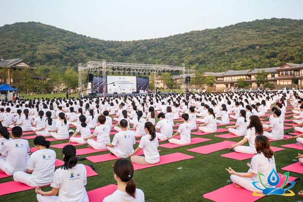 During the opening ceremony, more than 2,000 people amassed at Nianhuawan to practice yoga under the guidance of Indian gurus from KYM, one of the best-known yoga institutes in India. The spectacular scene is customary for this yoga event.