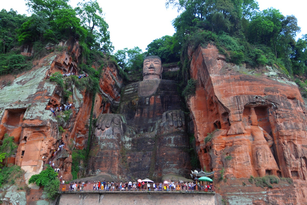 The Leshan Giant Buddha, stands 71 meters high and is the world's largest stone Buddha statue. Built during the Tang Dynasty (AD 618-907), the Buddha statue took 90 years to complete and was carved out of a cliff on Mount Emei facing at the confluence of the Minjiang, Dadu and Qingyi rivers. It has, along with the mountain, been listed as a UNESCO World Heritage Site since 1996. [Photo/Xinhua]