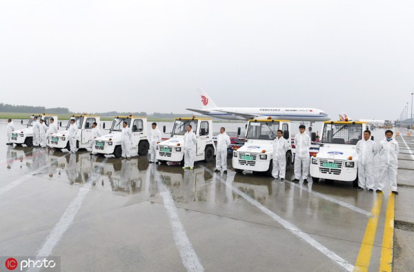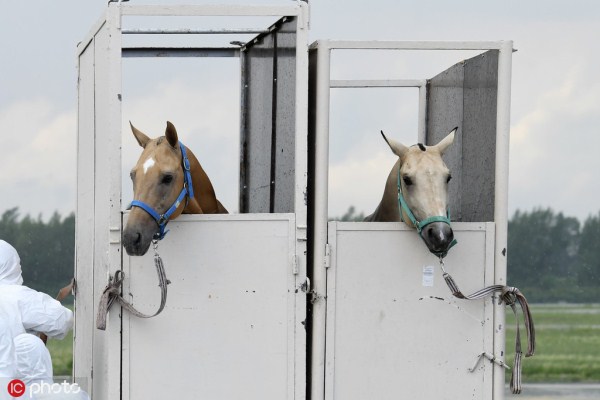 Changchun Customs staff in Changchun, capital of Northeast China’s Jilin province, await the arrival of 13 Akhal-Teke horses, a breed famed for its speed and endurance, from Turkmenistan, on June 14. Following an eight-hour journey from Turkmenistan, the horses arrived at Changchun Longjia International Airport and were inspected. The horses will take part in exhibitions and cultural events in Changchun. [Photo/IC]