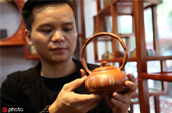 Notably, almost all of the 13 team members in Tang's workshop are his younger schoolmates. Initially, the pottery business was hard, as he had to make pottery himself while also taking care of management and sales. But the past five years of effort have earned him many more orders, compared to none at the very beginning. Now, a pot made from his Ningxi pottery workshop could sell between 500 ($72.39) to 10,000 yuan.