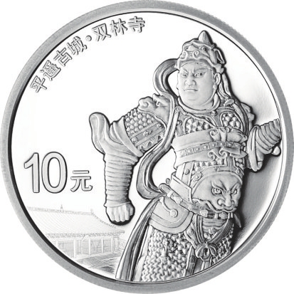The 20 g silver coin features an image of the Weituo Buddha sculpture and a hall in the Shuanglin Temple. [Photo/Shanxi Daily]