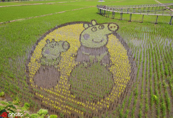 This popular paddy field display features the shape of Peppa Pig. [Photo/IC]