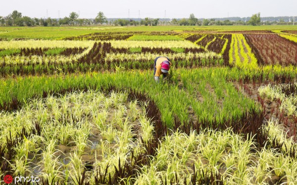 A farmer weeds in the paddy field at Xibe agricultural park in Shenyang, on June 17. [Photo/IC]