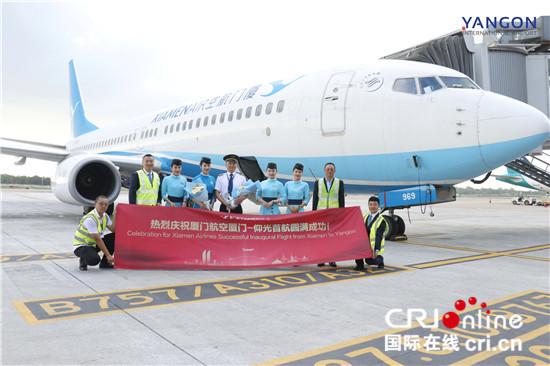 The new air route linking eastern China's Xiamen and Rangoon, capital city of Myanmar, completes its maiden flight on June 22. [Photo/cri.cn]