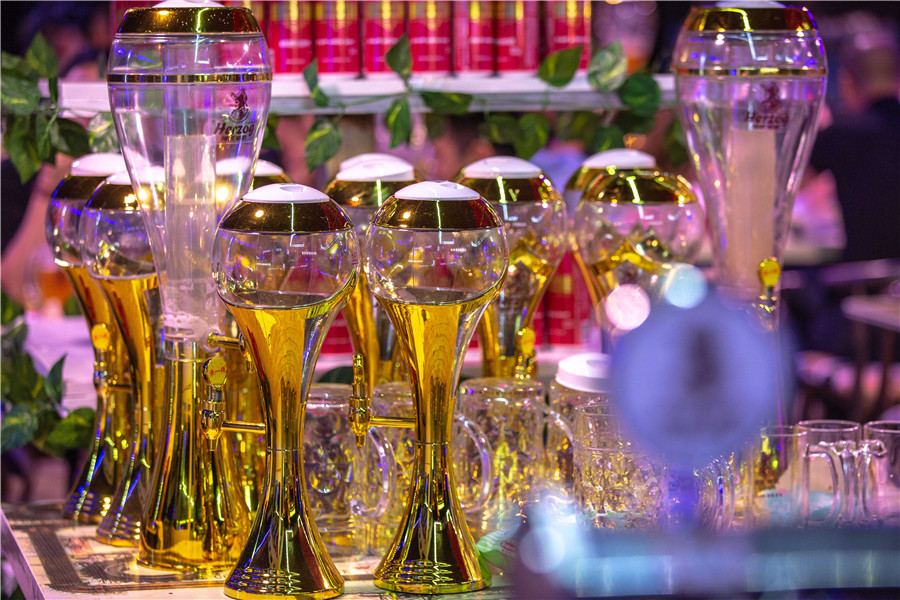 At the 18th Harbin International Beer Festival, tourists and residents can choose from more than 100 kinds of beer from all over the world. [Photo provided to chinadaily.com.cn]