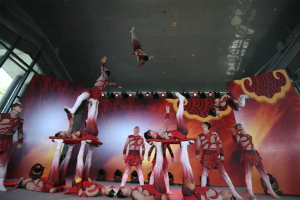 A stunning acrobatic show is staged at the opening ceremony, attracting lots of visitors from across the world on June 22. [Photo/iqilu.com]