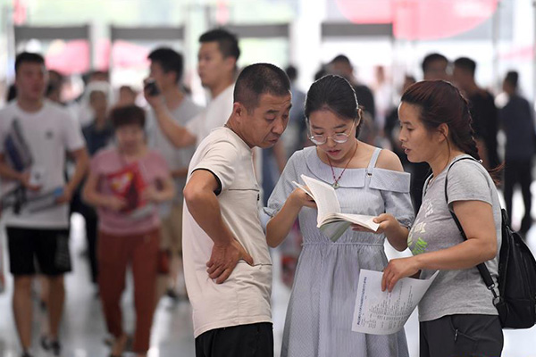 High school graduates and their parents attend an enrollment counseling event in Xi’an, Northwest China’s Shaanxi province, June 24, 2019.[Photo/Xinhua]
