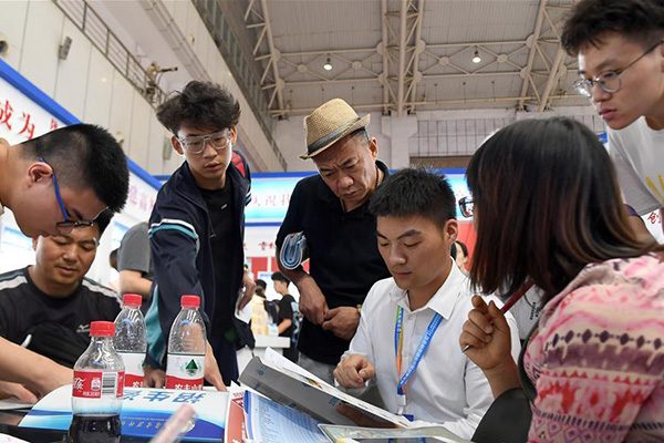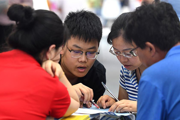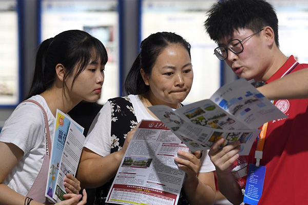 High school graduates and their parents attend an enrollment counseling event in Xi’an, Northwest China’s Shaanxi province, June 24, 2019. Higher education institutions in China have begun to provide enrollment counseling services to high school graduates following the National College Entrance Exam, or gaokao. [Photo/Xinhua]
