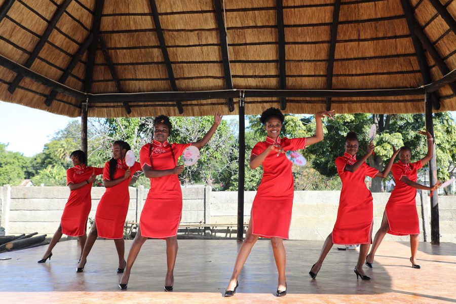 Zimbabweans wearing qipao put on a dance show at the 2019 Hangzhou Global Qipao Festival at the Arc de Triomphe in Paris, France on June 19. [Photo provided to chinadaily.com.cn]
