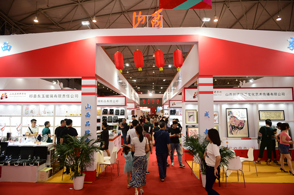 Visitors view products at the exhibition area for Shanxi province at the 11th China (Chengdu) Gifts & Houseware fair in Chengdu, Sichuan province, on June 21. A total of 22 Shanxi companies -- engaged in the culture, tourism, household products and food sectors -- carried out marketing promotions and staged business negotiations targeting the market in Southwest China at the fair, as a part of the 2019 Shanxi Brands China Tour (Chengdu). [Photo/Shanxi Daily]