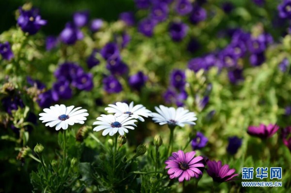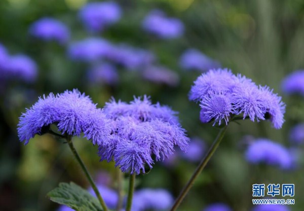 Purple ageratum conyzoides bloom at Shenyang Expo Park. [Photo by Jiang Bing/Xinhua]