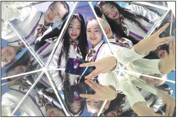 Employees take close-up selfies in front of a kaleidoscope at the Hong Kong exhibition section during this year's Central China Investment and Trade Exposition in Nanchang, Jiangxi province in May. Provided to China Daily
