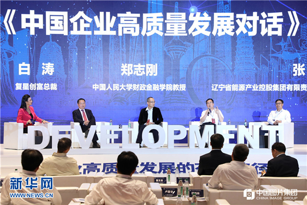 Zheng Zhigang (second from right), a professor at the School of Finance of Renmin University, delivers a speech at the High-Quality Enterprise Development Techniques Forum in Shenyang, capital of Northeast China’s Liaoning province, on June 17. [Photo/Xinhua]