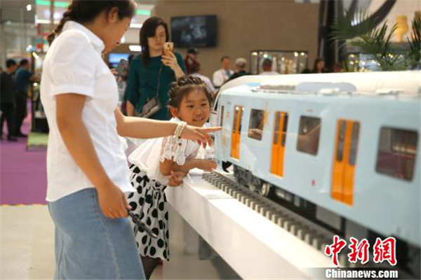 A mother and daughter admire a model of Harbin’s metro train at the sixth China Russia Expo. [Photo/chinanews.com]