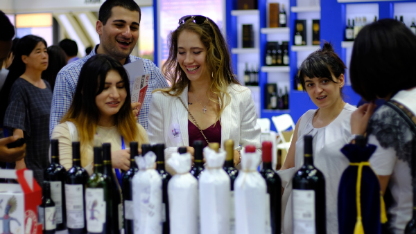 Foreign fans tour the wine expo on June 29. [Photo by Xiao Da/chinadaily.com.cn]