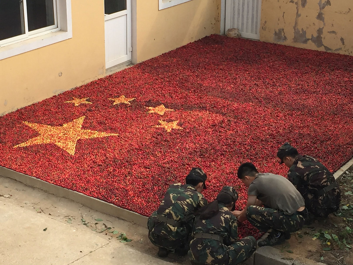 A national flag made from cherries in Liaoning province