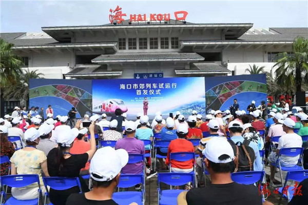A ceremony is held on July 1 to mark the the trial operation of Haikou's suburban train line. [Photo/Haikou Daily]