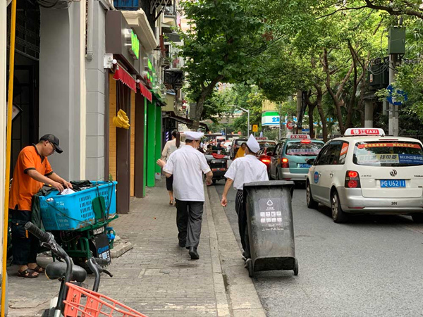 Crystal Galleria and Park Place, both shopping malls at the heart of Jing'an Temple commercial district, also received rectification notices as they didn't provide the standard four trash cans according to waste categories of recyclable, hazardous, wet and dry.