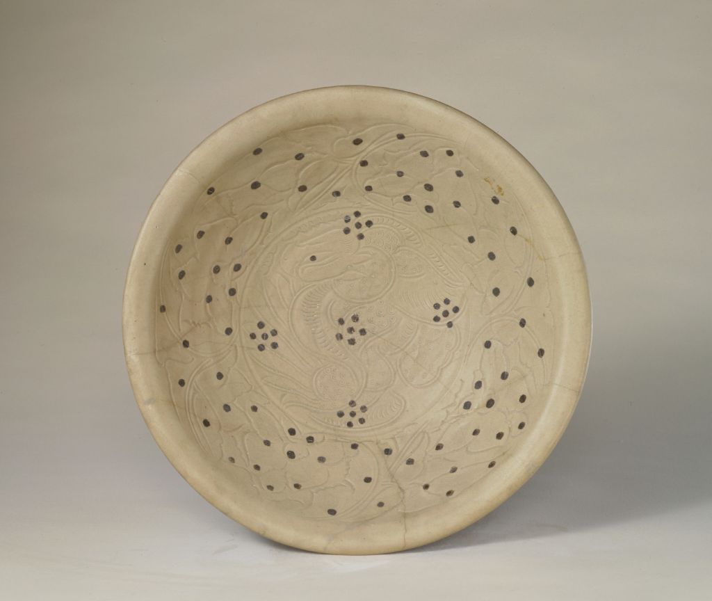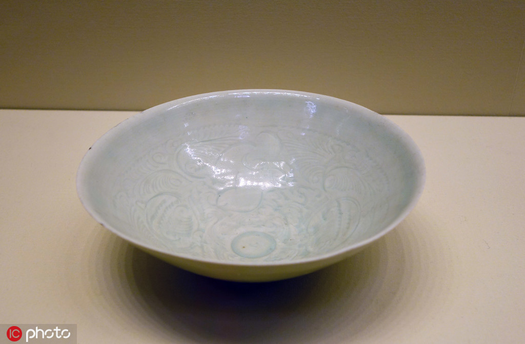 Xicun ware also shows debts to other kiln ware styles: the celadon bowl applied with interlacing chrysanthemum design was apparently influenced by the Yaozhou Kiln ware in Shaanxi province. The bluish-white glazed stoneware was exported in large quantities in the Song Dynasty (960-1279), and Xicun ware has been unearthed at ancient sites in some Southeast Asian countries.