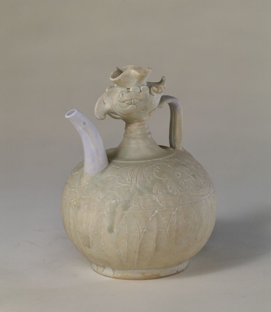 Phoenix-head pots (fengtou hu) and big-size broken-profile rimmed dishes with carved floral design (kehua zheyan dapan) are the two most distinguished types of Xicun ware, which includes other vessels in diverse shapes.