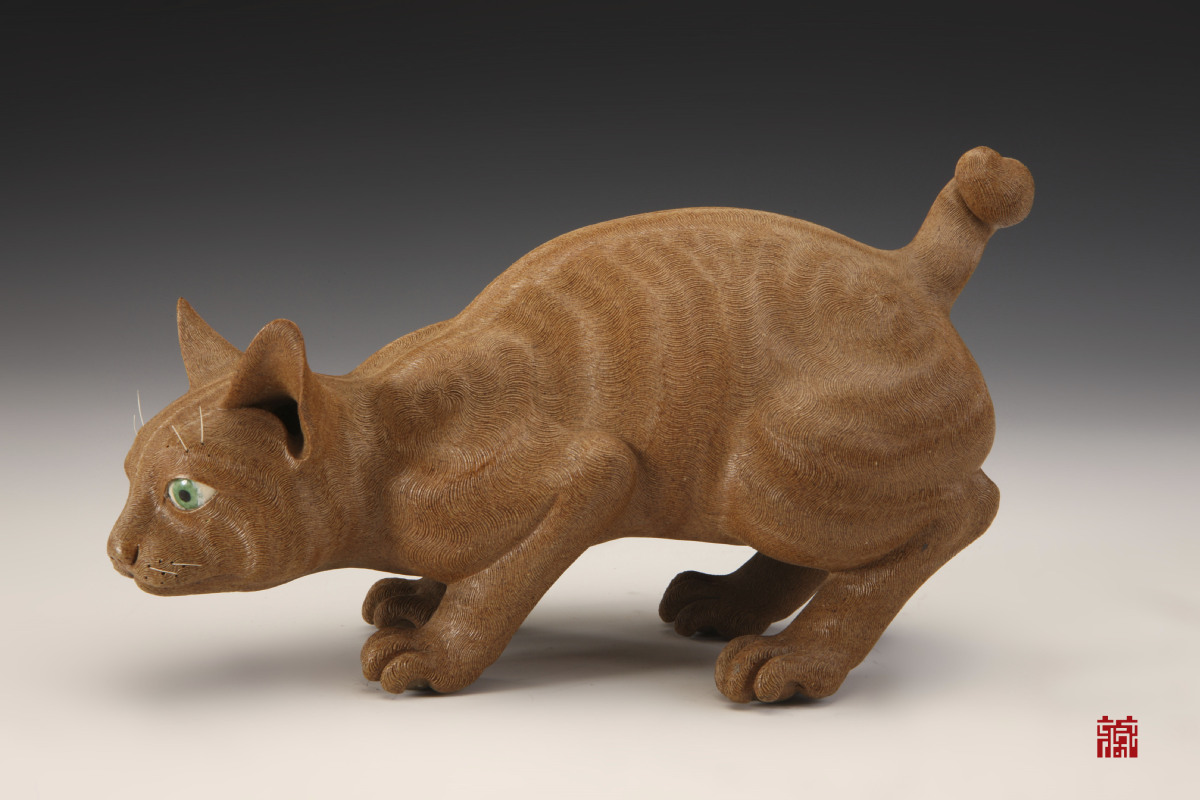 One of the Shiwan pottery masters, Liu Zuochao (1890-1933), excelled at sculpting human figurines. This sculpture bears his name mark "Crafted by Zuochao" at the bottom beside the trade mark of the ceramic shop "Liu Sheng's".