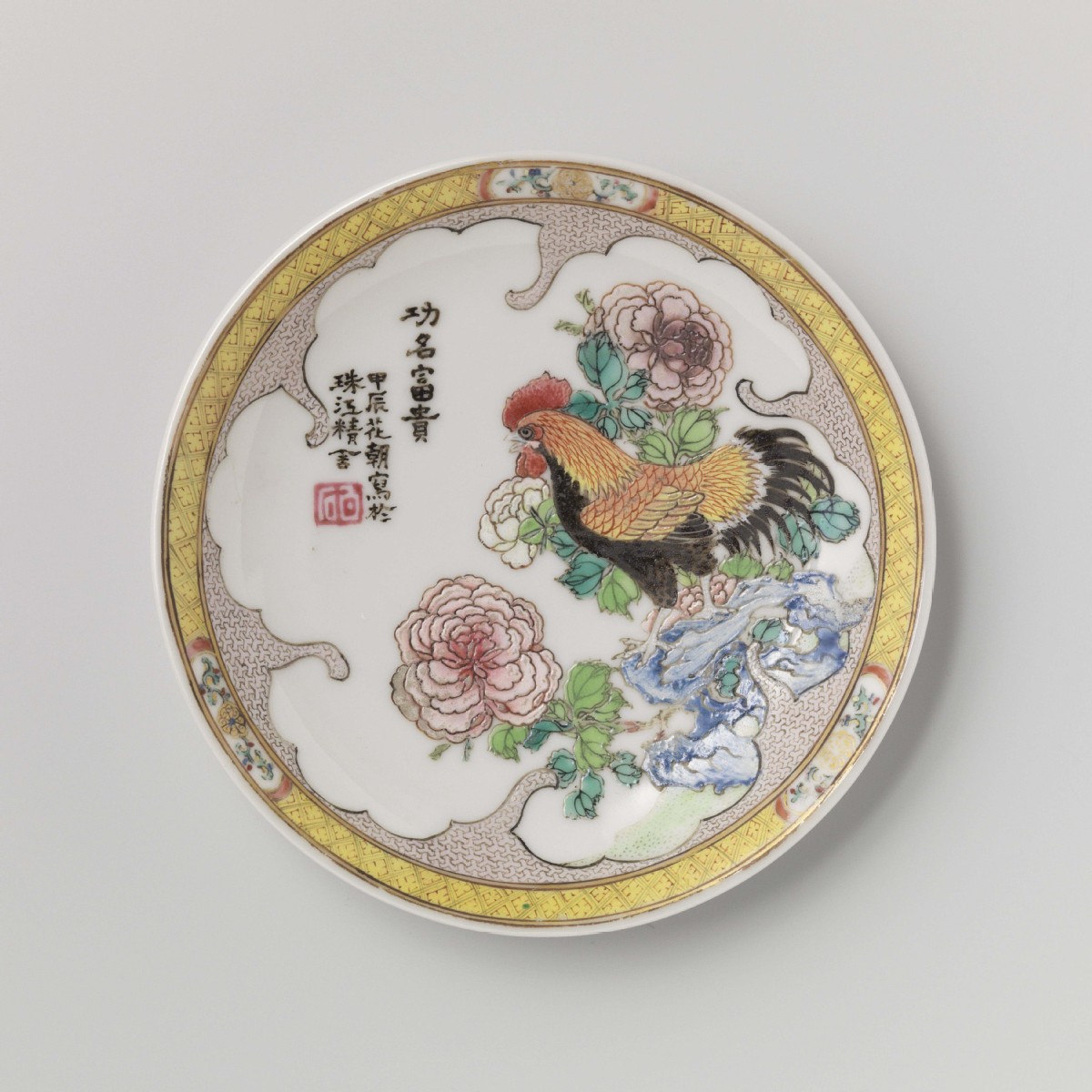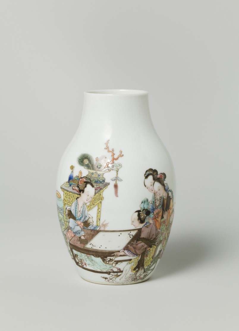 Canton porcelain is the short name of over-glaze color porcelain processed in Guangzhou, Guangdong province. Otherwise known as Guangdong polychrome porcelain or Guangzhou polychrome porcelain with golden paint, it is a signature handicraft art involving color paints against a white glaze background. The white glazed porcelain vessels, as semi-finished products, were fired at the Jingdezhen Kiln before they were shipped to Guangzhou, where they were decorated with colored paints and re-fired.