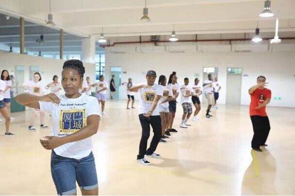 American students practice tai chi with a Chinese teacher. [Photo/fao.xm.gov.cn]