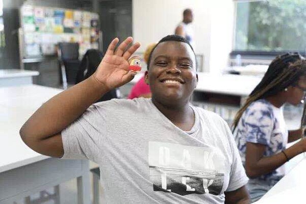 An American student shows off his pottery. [Photo/fao.xm.gov.cn]