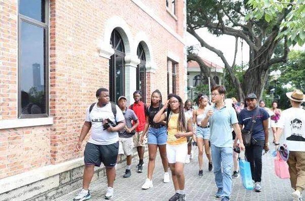 A Chinese guide introduces Gulangyu, a UNESCO World Heritage Site, to the American students. [Photo/fao.xm.gov.cn]