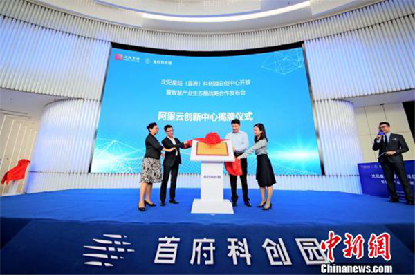 The unveiling ceremony for the Alibaba Cloud Service Innovation Center is held in Shenyang Shoufu Science and Technology Innovation Park, in Huanggu district in Shenyang, Liaoning province, on June 28. [Photo/chinanews.com]