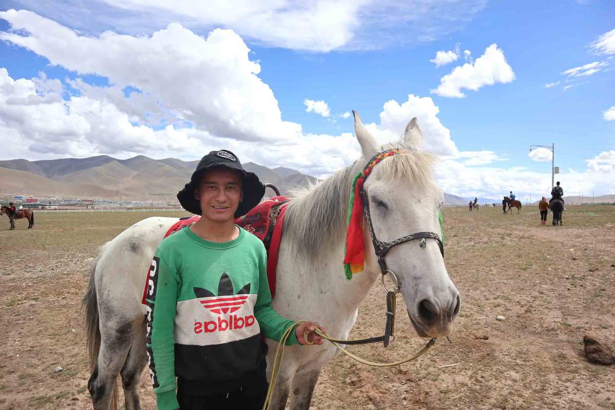 Dondrub Chosang is one of 13 horse-riding businessmen near the giant tent, and also one of the members of the county’s equestrian team.