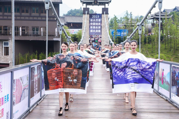 Models present clothes printed with the photography works. [Photo by Chen Xiaoyu/for chinadaily.com.cn]