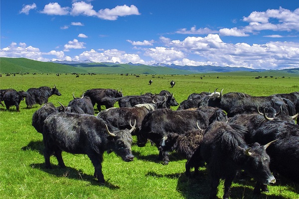 Having been domesticated for thousands of years on the Qinghai-Tibet Plateau, the yak is the most important animal to Tibetan families, since it is a source of meat, milk, fiber and fuel for fires. Yak meat is rich in protein, amino acids, carotene, calcium and phosphorus. [Photo/VCG]