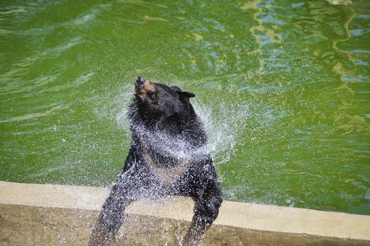 A bear swims in a pool to cool itself in Tianjin Zoo on July 4, 2019. [Photo by Shi Song/for chinadaily.com.cn]