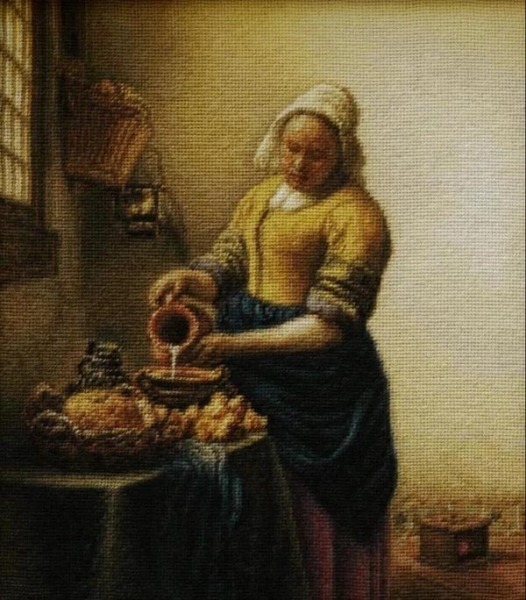 by the Dutch master painter Johannes Vermeer is exquisitely reproduced in woolen embroidery. [Photo/Chinaculture.org]