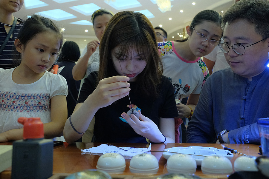 A guest tries painting at the annual Gate of Music was opened in Beijing on July 5. [Photo provided to China Daily]