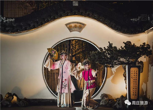 Visitors to the Pear Garden, formerly known as Zhouzhuang Ancient Opera Stage, are able to enjoy Kunqu Opera, Wuxi Opera, Shaoxing Opera and Shanghai Opera in the evening. The performance time runs from 18:30 pm to 20:30 pm.