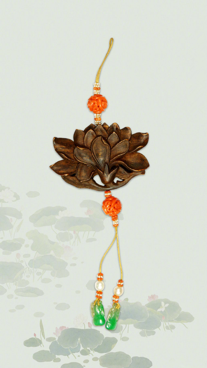 An agalloch eaglewood lotus-shaped jade ornament from the Qing Dynasty. [Photo/Official Weibo account of the Palace Museum]