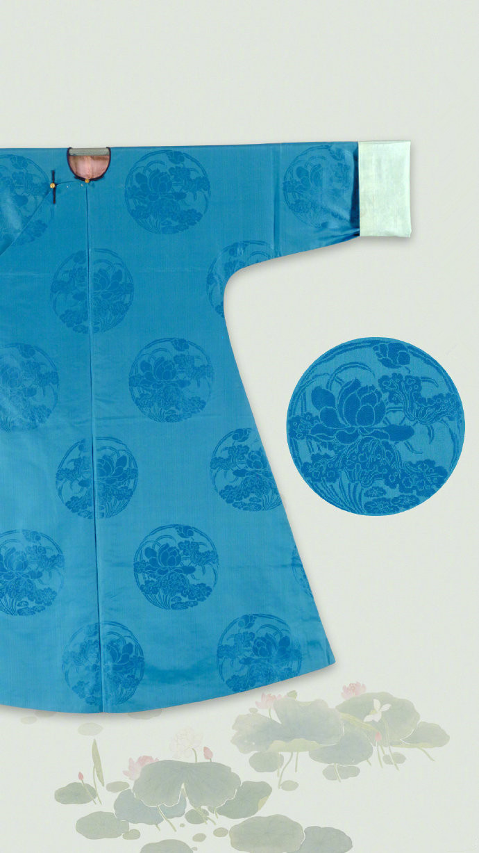 A blue silk shirt decorated with lotus patterns from the Daoguang Period of the Qing Dynasty. [Photo/Official Weibo account of the Palace Museum]