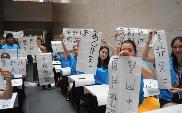 More than 30 overseas Chinese teenagers from Germany, Russia and other countries visited the Wang Yirong Museum in Yantai, East China's Shandong province on July 9 to explore the origin and evolution of Chinese characters.