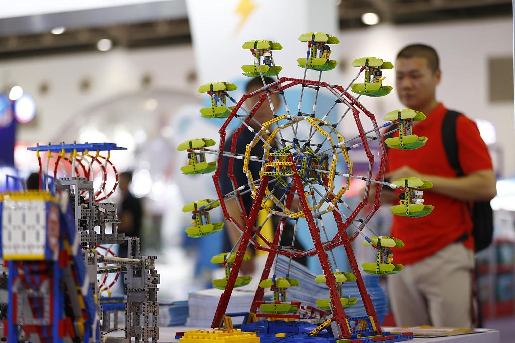 A visitor is pictured at the Kids Fun Expo underway in Beijing, July 11, 2019. [Photo/VCG]